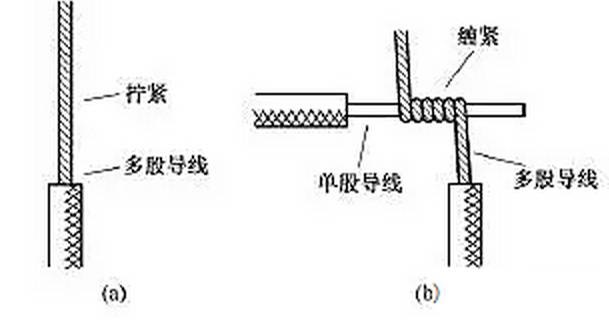 需連接的導線種類和連接形式不同,其連接的方法也不同。常用的連接方法有絞合連接、緊壓連接、焊接等。連接前應小心地剝除導線連接部位的絕緣層,注意不可損傷其芯線。