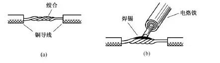 絞合連接是指將需連接導線的芯線直接緊密絞合在一起。銅導線常用絞合連接。